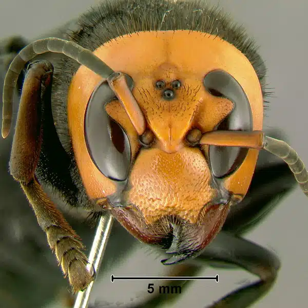 Esta especie de avispa, originaria de China y Japón, puede medir hasta 5 cm de largo y 7 de envergadura de alas, y su aguijón alcanza los 6 mm. Su picadura no solamente es dolorosa, sino que su veneno es tan potente que es capaz de perforar tejidos finos.
