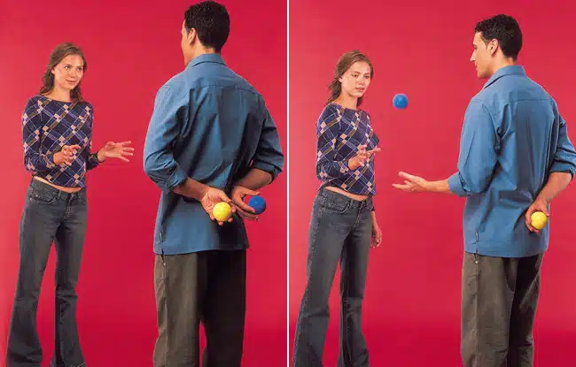 Intenta recoger un objeto que te lance otra persona.